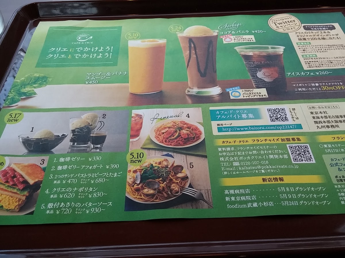 Café de Crié Plus - Shinjuku Garden Tower Menu