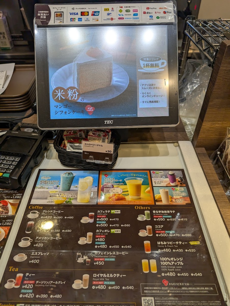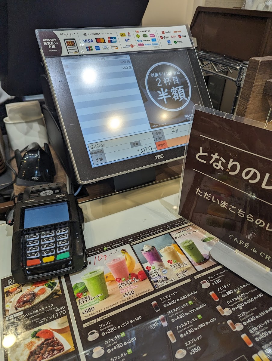 The café also features a range of drinks, from refreshing iced teas to expertly brewed lattes, complemented by enjoyable jazz and French music in the background. The convenient payment options, including credit cards and QR codes, add to the ease of the experience. Don’t forget to snag your discount coupon with your receipt for a subsequent half-price drink!